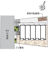 Hot-water supply、Air conditioner、Balcony、Bicycle parking area